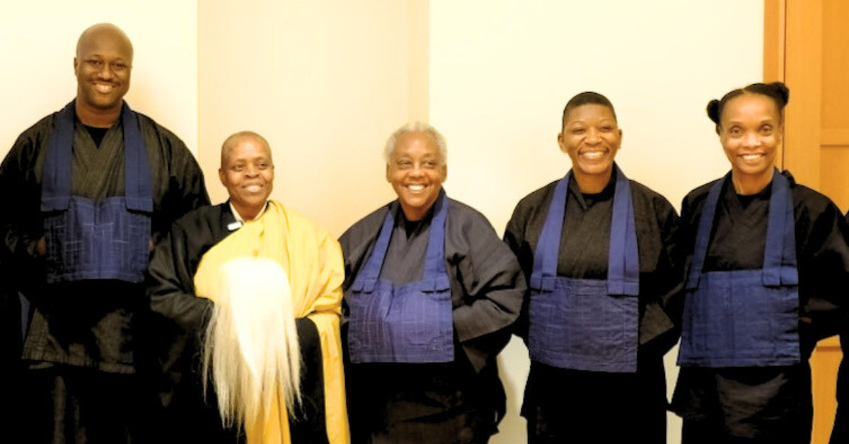 Left to right: Ofosu Jones-Quartey, Zenju Earthlyn Manuel Osho, Terrye Callender, Carmen Phelps and Claudelle Renee Glasgow. Photo by Shundo Gennin.