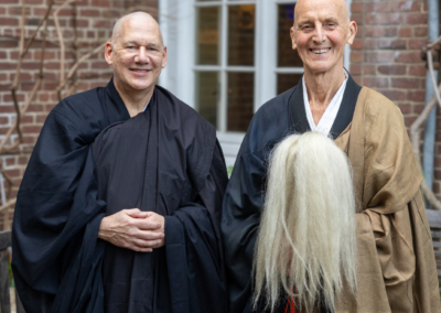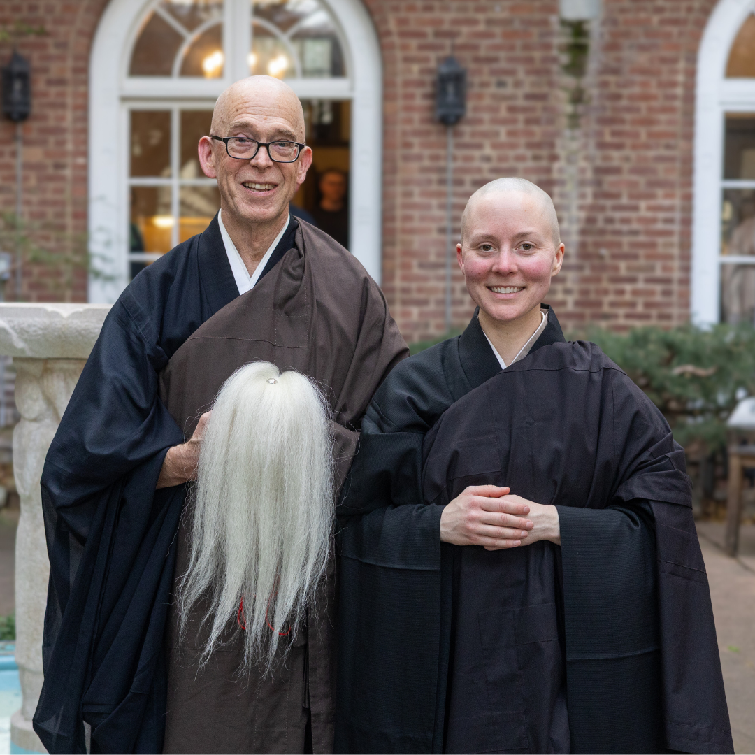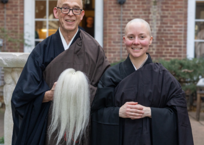 Michael Novak (Zenrin Myoko, Zen Forest /Wondrous Virtue) was ordained by Sr. Dharma Teacher Ryushin Paul Haller. Lauren Dankiewicz (Myozan Ankyo, Inconceivable Mountain/Peaceful Abiding) was ordained by Anshi Zachary Smith. Abiding Abbot Mako Voekel served as a supporting preceptor.