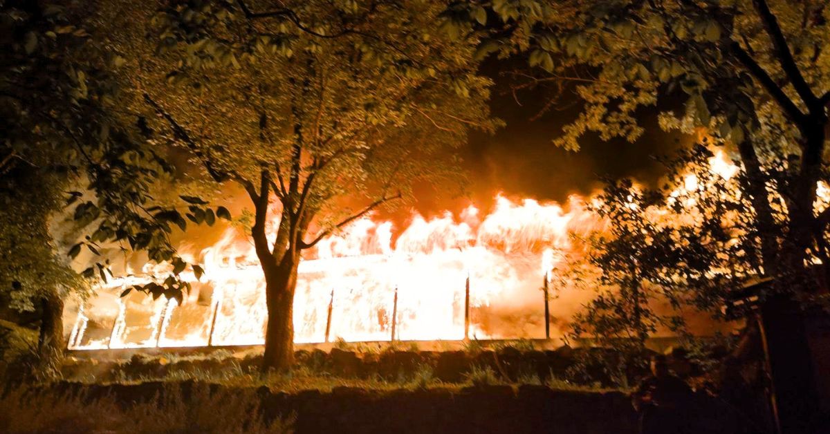 The blaze devouring the west side of the zendo. My favorite tree, the Asian maple, stands in the center. It miraculously survived!