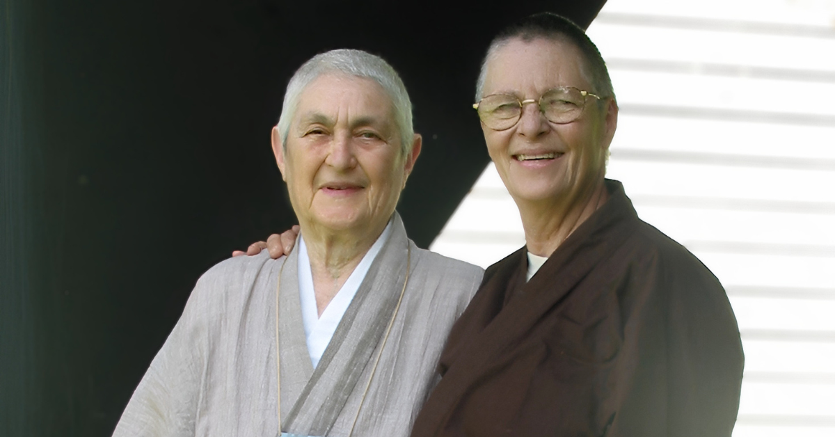 Barbara Kohn (r) pictured here with her teacher Blanche Hartman (l) at Houston Zen Center.